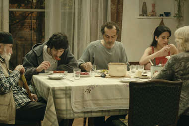 At 52, Manana (Ia Shughliashvili) packs a bag and walks out on her husband, son, daughter, daughter's live-in boyfriend, and elderly mother and father, all of whom live together in a single apartment. The family is cantankerous and blustery, asking everything of Manana, who spends her days teaching better-behaved teenagers about literature. But as Nana Ekvtimishvili and Simon Groß's striking character study unfolds, the motivation behind Manana's departure is a deeper strain of frustration, despite what her brother, aunts, uncles, and anyone else who can cram themselves into the situation would like us to think. Anchored by Ia Shughliashvili's stunningly internal performance, and punctured by a dark sense of humor akin to Darren Aronofsky's mother! (which would have been the perfect alternate title), My Happy Family is both delicate and brutal in its portrayal of independence, and should get under the skin of anyone with their own family drama.